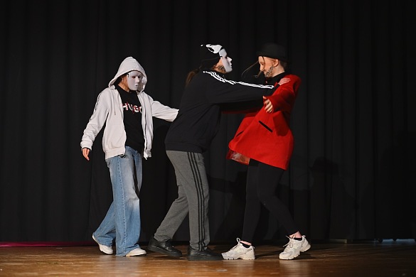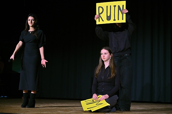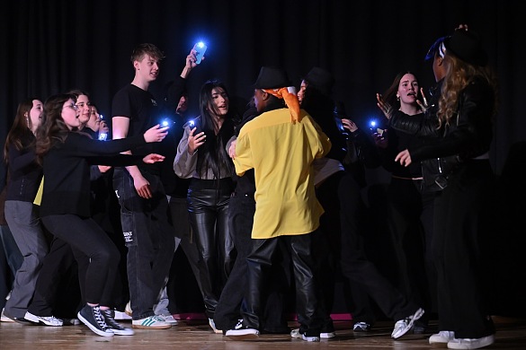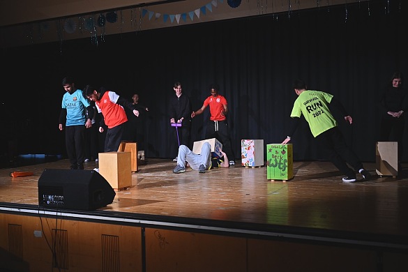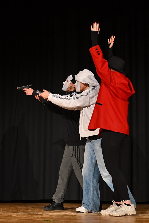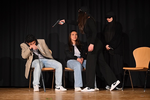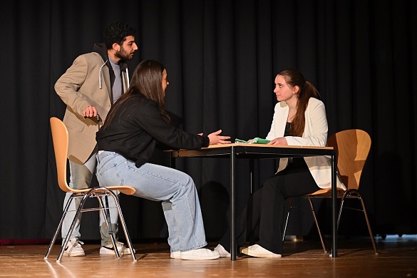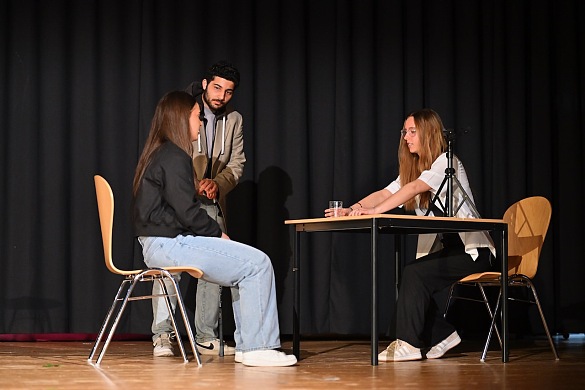 Die Q2-Kurs in Darstellendem Spiel haben ihre Abschlussaufführungen präsentiert. Am Mittwoch fand vormittags eine Vorstellung statt, am Donnerstag dann die Abendvorstellung, hier leider aufgrund zu vieler Ausfälle ohne das Deutsch-Profil.